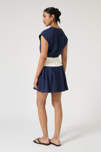 VICTORIA MINI DRESS - NAVY/WHITE